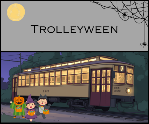 Trolleyween rides featuring Ms. Debra with stories and a Halloween treat for younger children. Wear your Halloween costume! Tickets are required and only available at TrolleyRide.org.